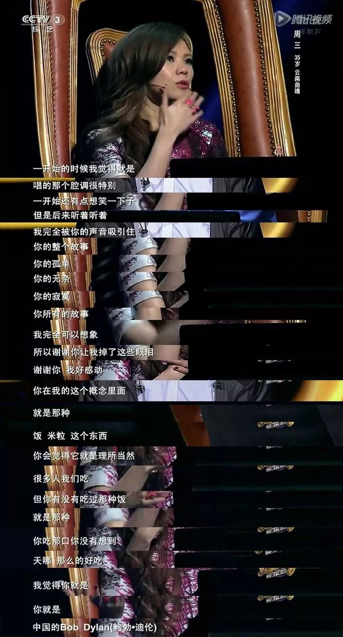 Tanya說:「我完全被你的聲音吸引了,你的寂寞,你的孤單,你的無奈,你所有的故事,我完全可以想像,你就是大陸的鮑勃.迪倫。」