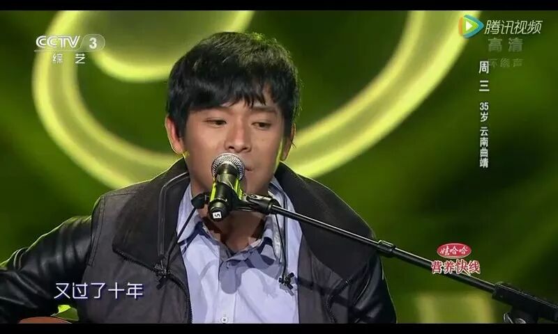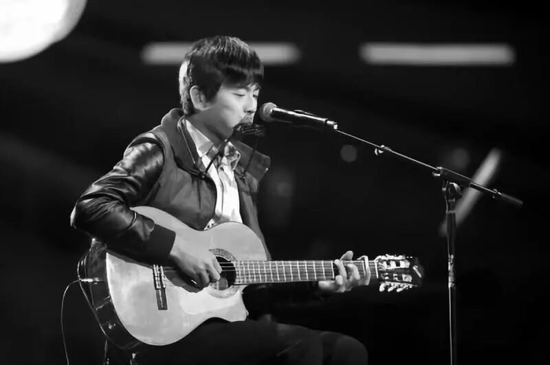 那天,周三藍色襯衣的外面是一件黑色的夾克,頭髮也是略帶凌亂的,懷抱一把吉他,站在舞台上一點都不瀟灑,他緊張的眼神遊離。