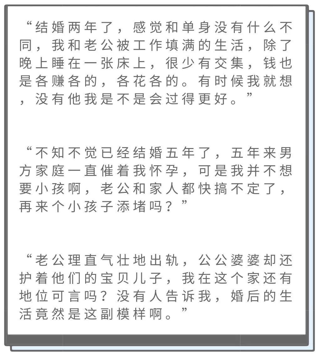 最近聽到一個新鮮的詞,叫做「婚後單身」,網友們紛紛說出了她們的故事: