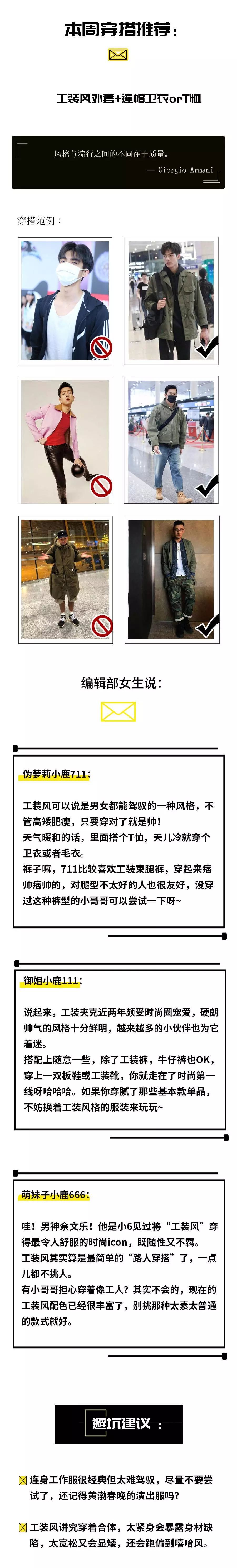 因為工裝風衣著對身材要求沒那麼高,所以中等身材的小哥男生駕馭起來比較容易,一起來看看怎麼搭配吧~