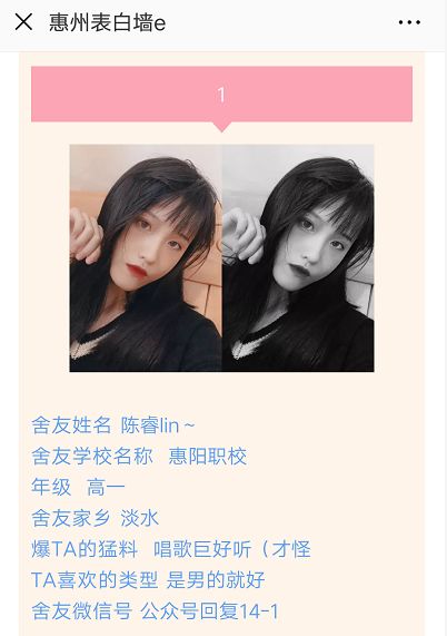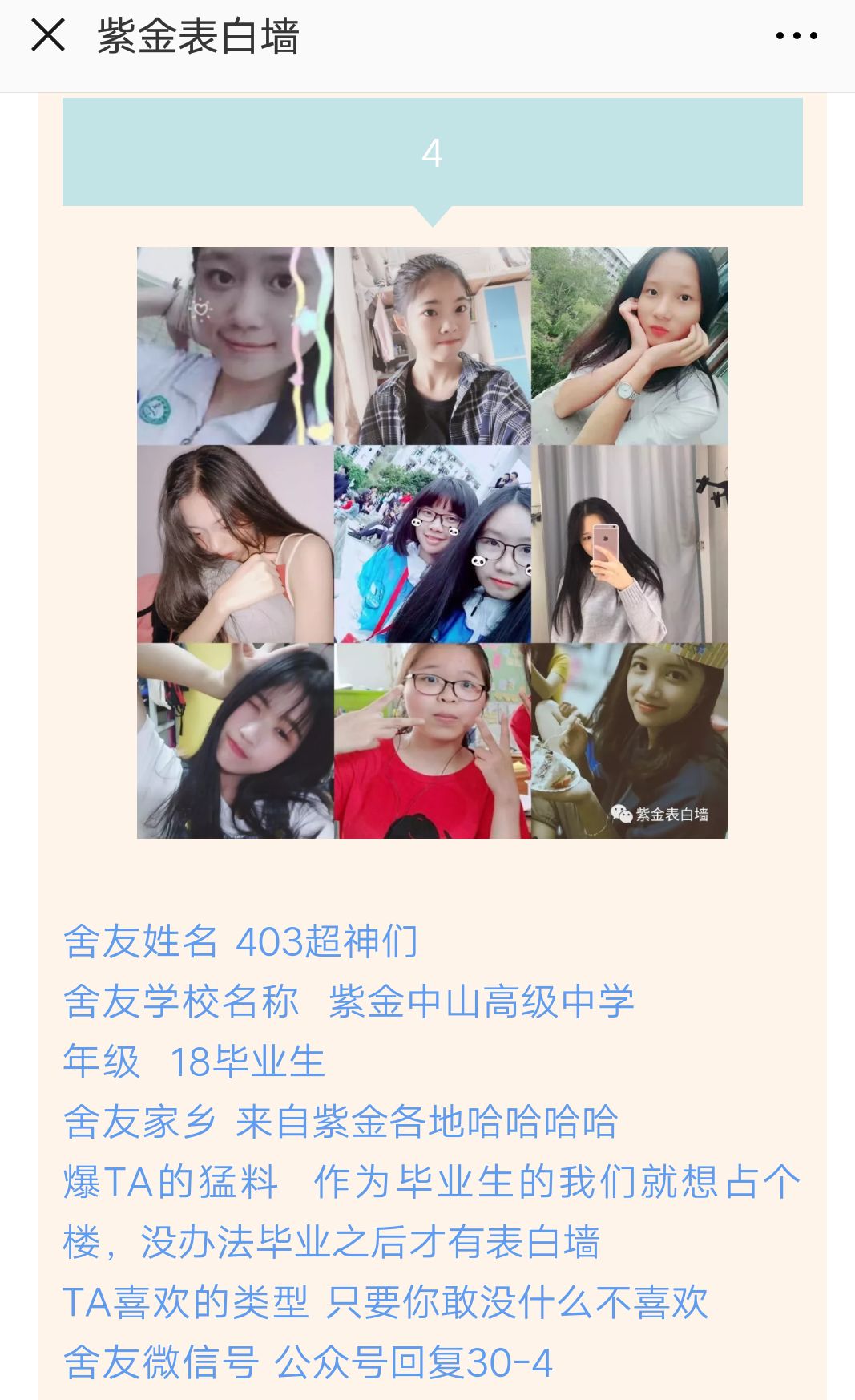 我們其他部分地區表白牆公眾號之舍友牆節選