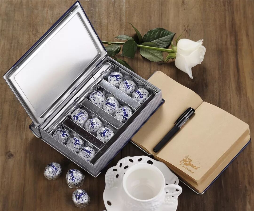 你是如此書香氣質,書本禮盒才配你~精緻藍色鐵藝禮盒中內含12顆黑巧克力,將濃濃愛意用鐵藝封存。承諾、美好回憶、幸福感受都在這裡面,永不消逝。