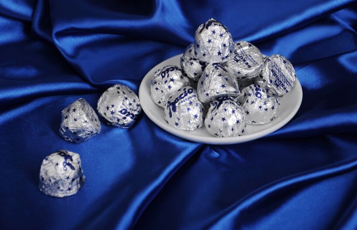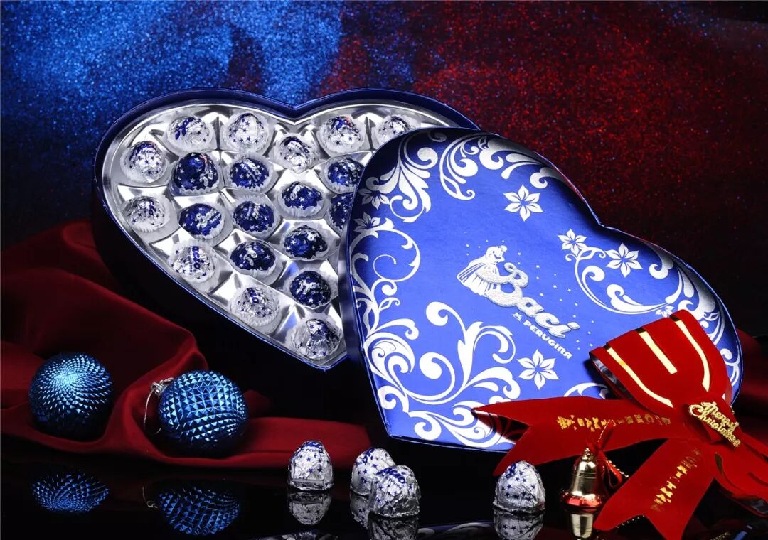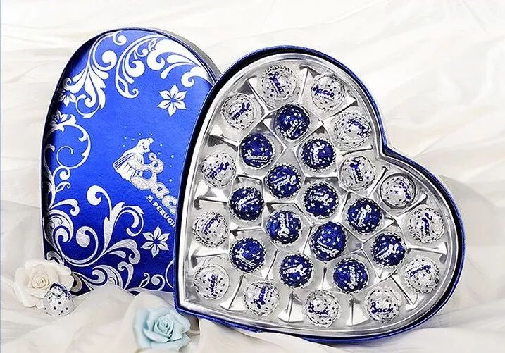13顆白巧克力+14顆黑巧克力等於一生一世的愛意告白。藍色愛心形狀高貴不顯俗氣。復古花紋和星空錫紙包裹著甜蜜巧克力,每一個角度都似乎在說:「愛你一生一世」!