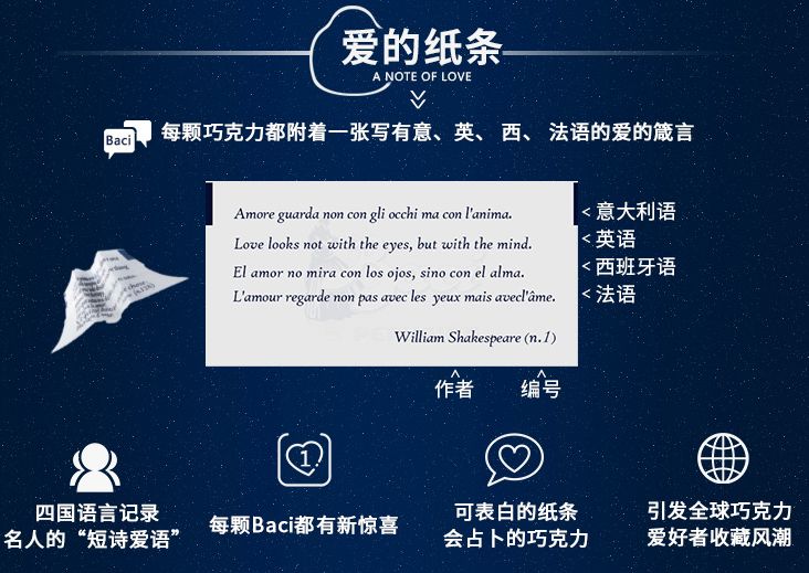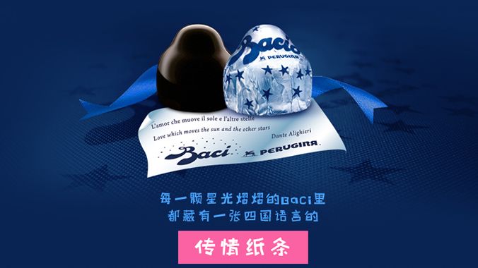 【特點】:每一顆Baci巧克力都有情話紙條包裹