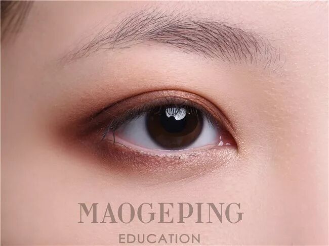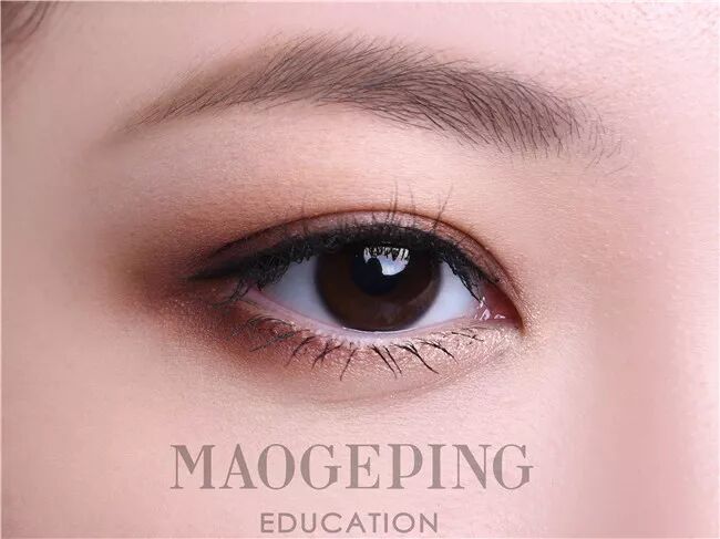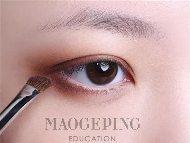 STEP5:用深咖色加深在睫毛根部,增加眼部妝容的的層次。並在內眼角及眼球中部,淡淡的掃上香檳色珠光眼影,讓眼睛看起來更加立體。