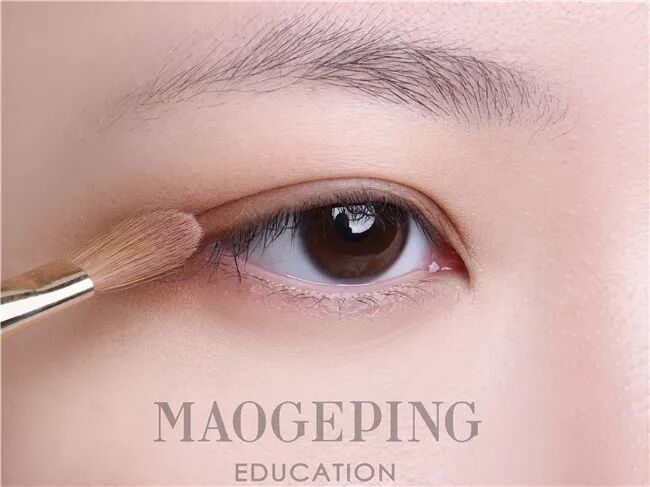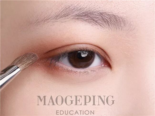 STEP5:用深咖色加深在睫毛根部,增加眼部妝容的的層次。並在內眼角及眼球中部,淡淡的掃上香檳色珠光眼影,讓眼睛看起來更加立體。
