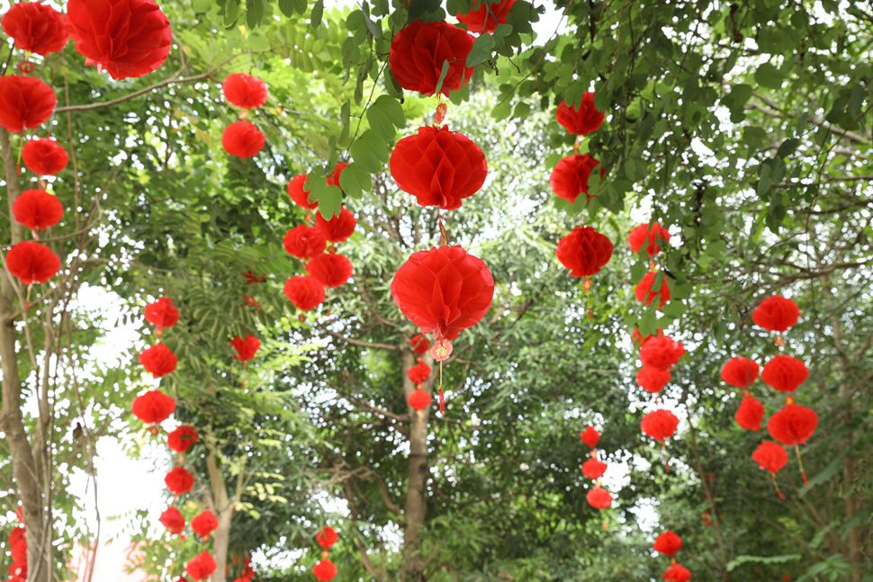她們淹沒在紅色燈籠海洋中