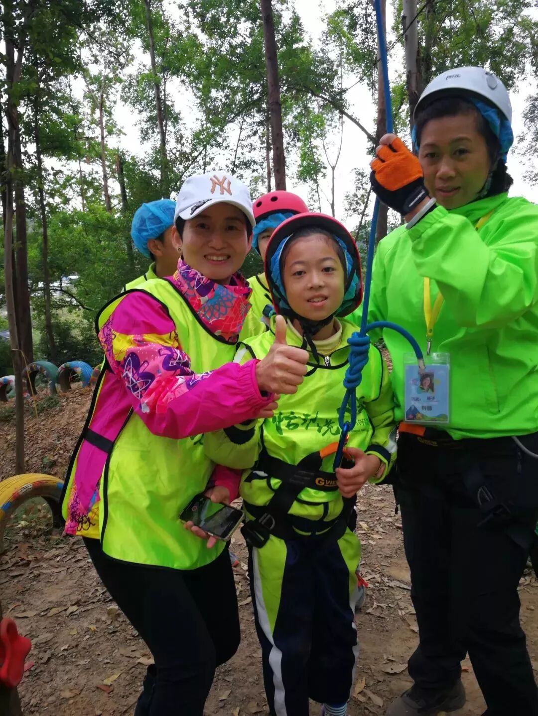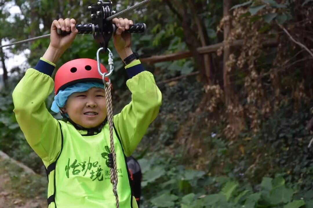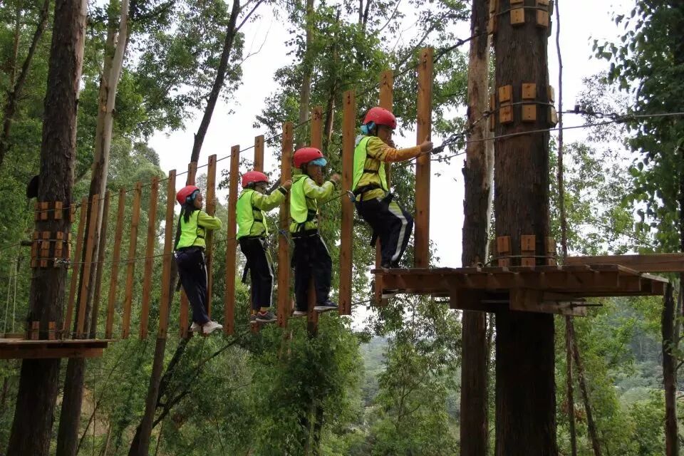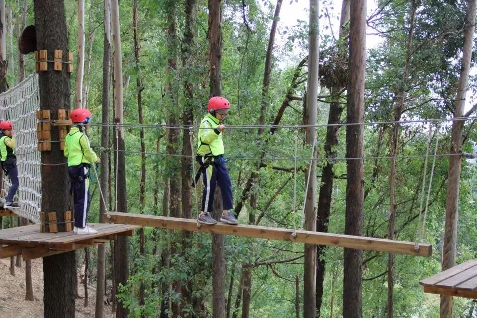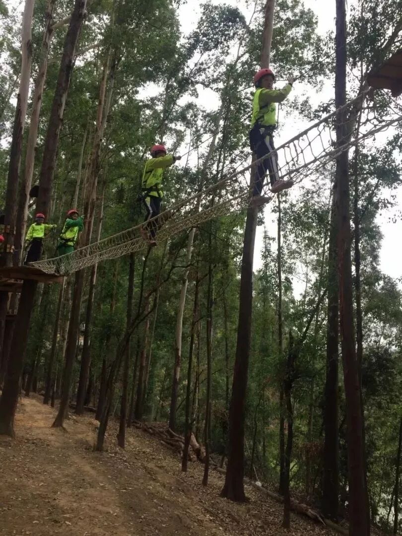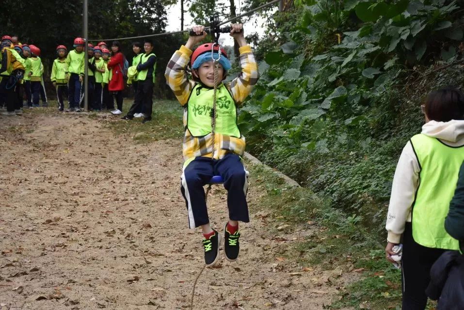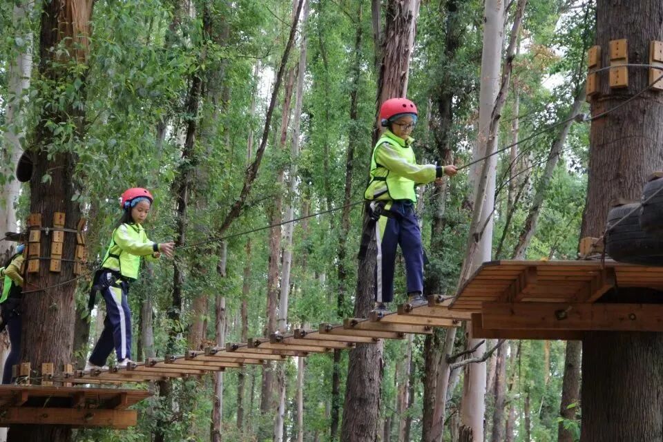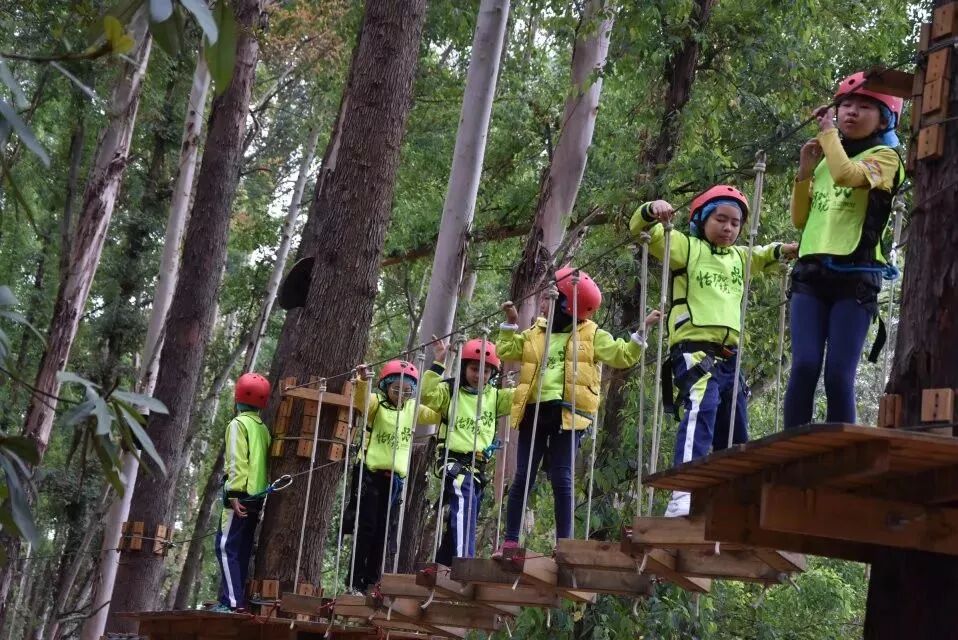 樹攀結束後,工作人員開始讓我們穿上安全褲,戴上安全帽,準備下一項挑戰!這不是一個人在戰鬥!因為同學們要依次排隊逐一過關,站在高空做任務的時候,即便你很恐懼,但是心中仍有一句話:只要邁出了腳步,就沒有退路。這項挑戰不僅考驗同學們的膽量,還鍛煉大家的團隊意識!每個人都要跟上腳步,但是也不能急於求成,不能打亂前面同學的節奏。當然,在高空中,大家都相互鼓勵,前面的同學把經驗傳授給後面的小夥伴,大家有說有笑就不害怕啦!這個遊戲我們全班都勇敢通關!就連工作人員也佩服我們的膽量!當我們成功落地的時候,爸爸媽媽還有王老師都會和我們擁抱,擊掌,我們都特別自豪!允樂班就是這麼一個團結的勇往直前的班級!