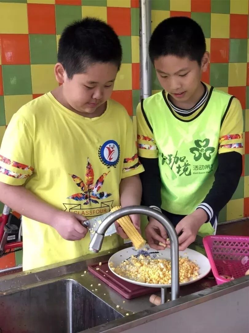 中午我們自己動手,豐衣足食,我們親手做飯讓爸媽品嘗,雖然有的菜炒得並不那麼好,但我們覺得格外開心!爸爸媽媽也加入到我們的行列,一起做,我們深深感受到做家務也不是一件容易的事,真是「看花容易,繡花難」!
