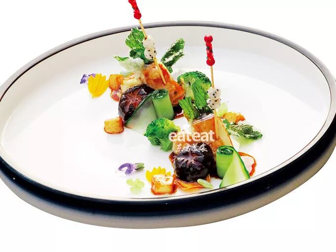 適用菜肴下面以「蠔香鮮菇配有機豆卷」為例,簡介其用法:1.取鱸魚淨肉250克切小丁,加入蝦仁220克、蛋清30克,一起放入攪拌機打成蓉,取出後加入薑汁10克,白胡椒粉、芝麻油各8克,蔥薑水20克拌勻,摔打上勁,即成餡料。2.取千頁豆腐60克切成8×2×0.4公分的片,分別卷入餡料8克、菜心絲5克,表面拍幹澱粉,裹勻脆皮糊,用五成熱油溫炸至色澤金黃,撈出瀝油,擺盤。3.鍋內留底油燒熱,加入鮮蠔汁85克燒熱,放入滑過油的鮮香菇20克小火煨1分鐘,出鍋前淋蔥油6克,澆在豆腐卷上,用焯過水的西蘭花20克擺邊即可。