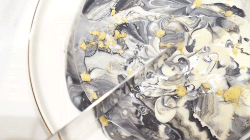 另一款水墨爆漿,擁有宛如精緻大理石的飄逸紋路,切蛋糕的時候就像在擺弄藝術品,入口方知其實是竹炭奶蓋的美妙風味!!