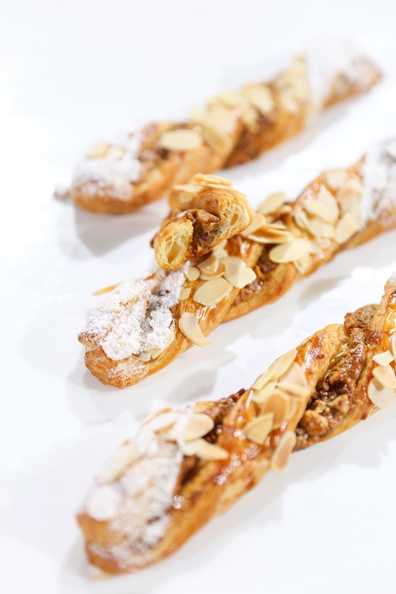 烤制金黃色的扭扭棒,點綴上榛子片,入口和甜甜圈的松軟完全不一樣,酥脆的口感,榛子的香氣提升了它的風味。