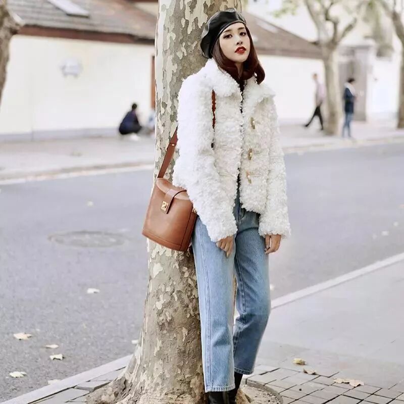 除了氣質型大衣,軟糯的羊羔毛外套作為節日約會場景下的戰袍,保暖好看沒有攻擊性,十分顯氣質溫柔!