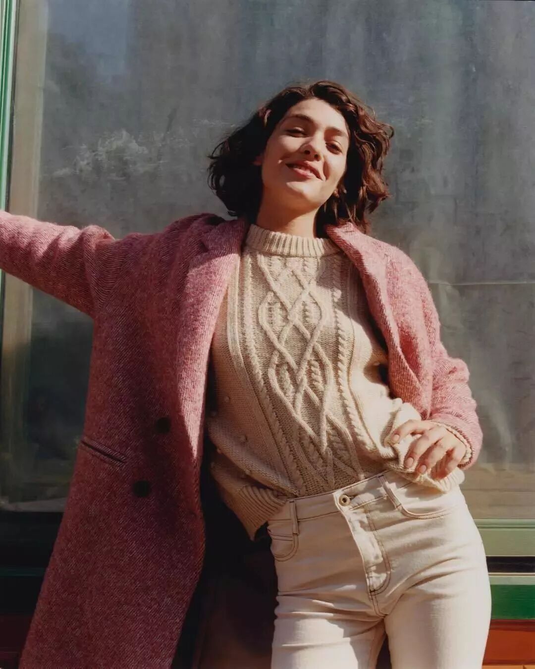 飽和度低一些的茱萸粉,也是冬日里不能少的明朗風景。讓你少女感爆棚的同時,又不會有裝嫩的嫌疑~內搭闊腿褲,拉長身形,又酷又美!