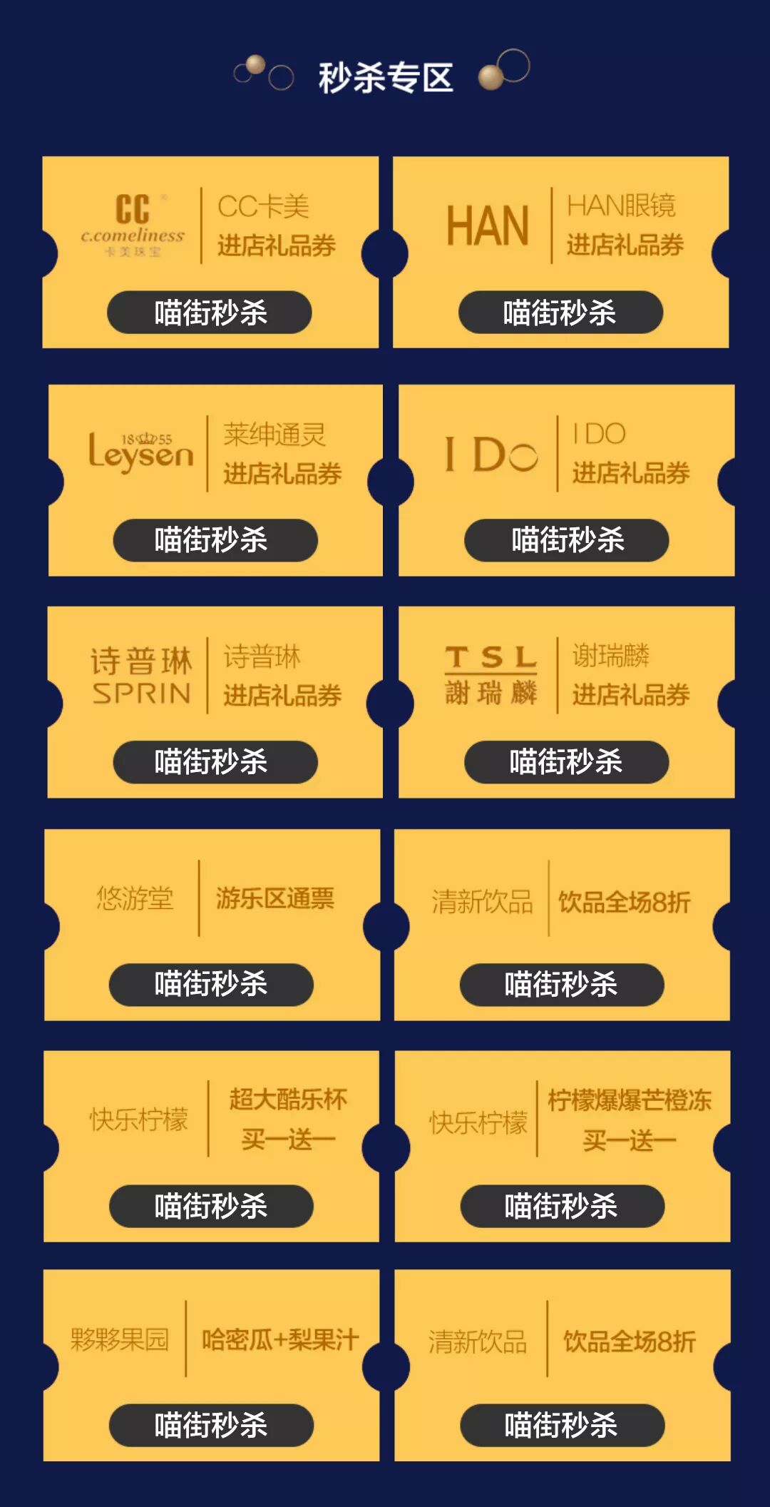 喵街秒殺品牌進店禮、