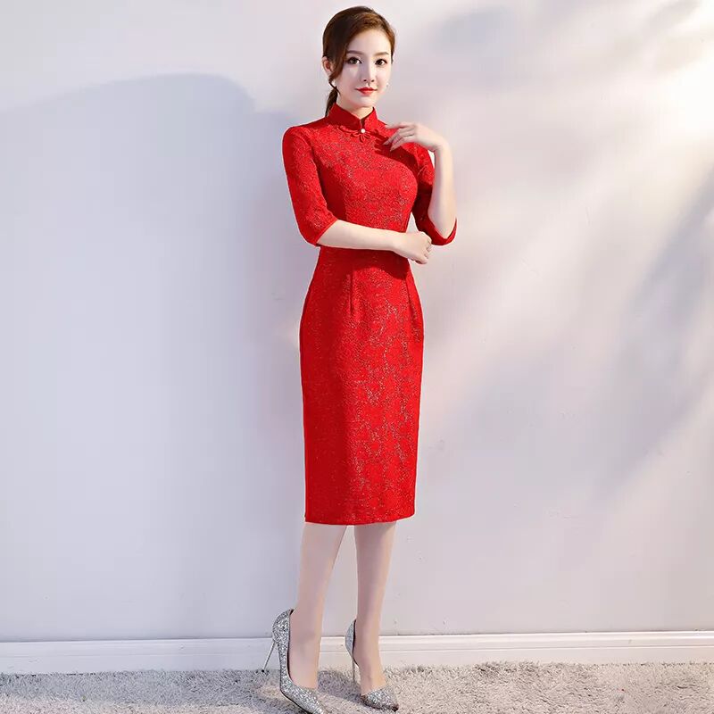 沁若幽蘭高檔蕾絲面料修身旗袍cjs60075