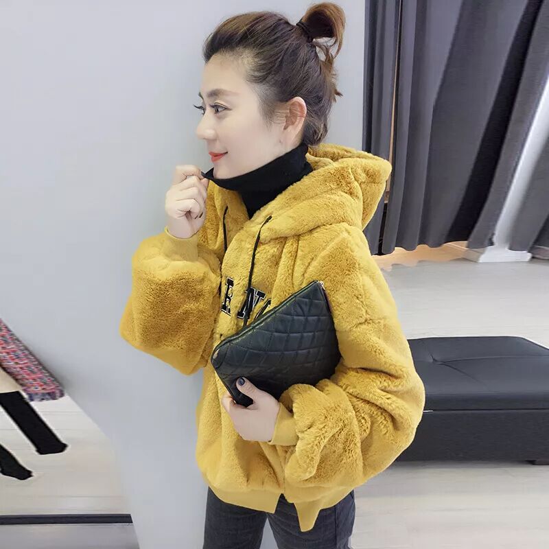 秋冬裝新款女裝韓版寬鬆連帽加厚毛絨衛衣上衣女HT686