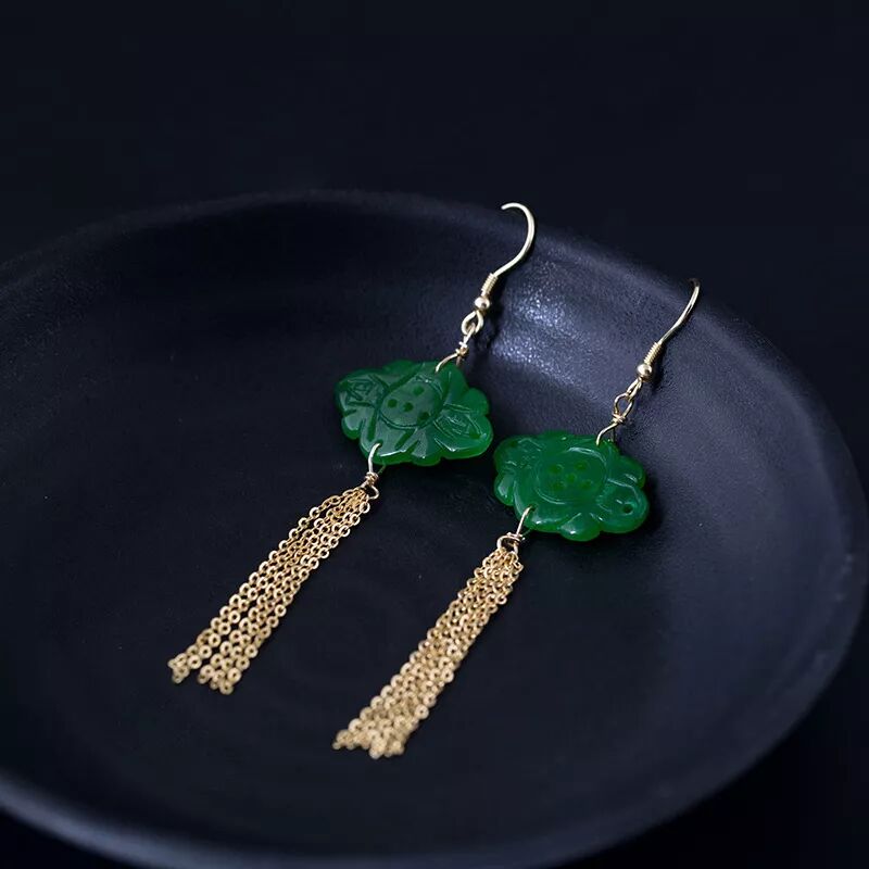 手工設計s925銀復古耳環女氣質典雅幹青流蘇耳環中長款首飾XYF20083