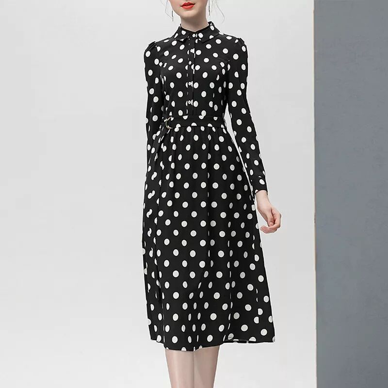 高檔黑白波點襯衫式修身連衣裙OM20026(配腰帶)