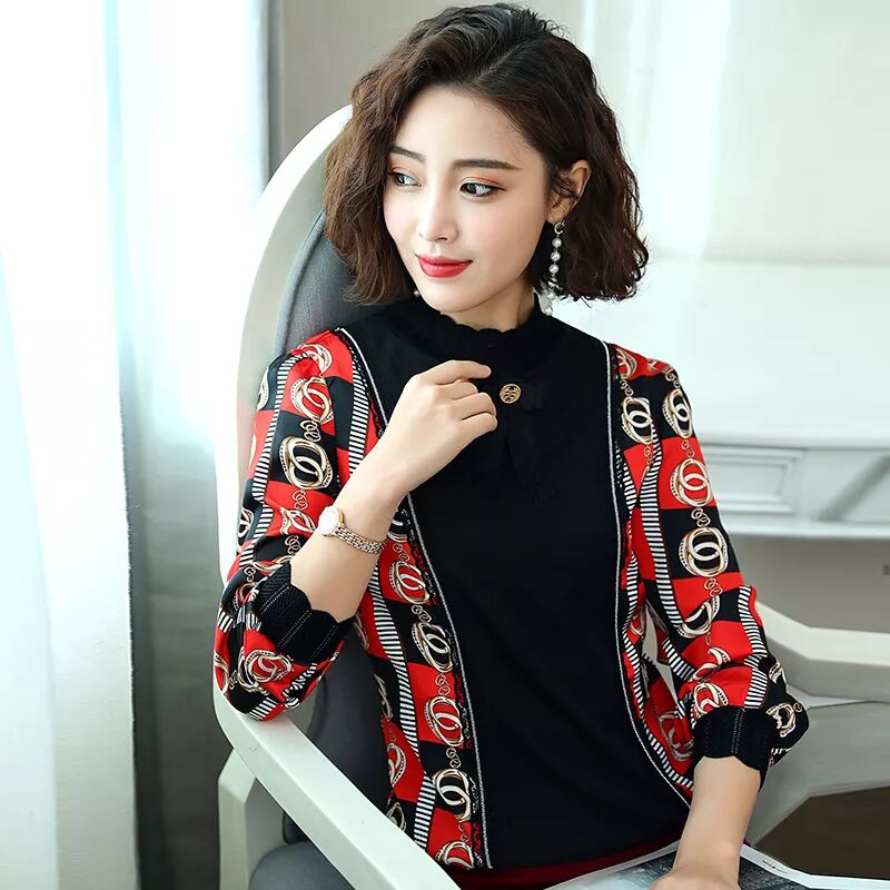 2019新款寬鬆領結洋氣小衫上衣打底衫潮YZ4804