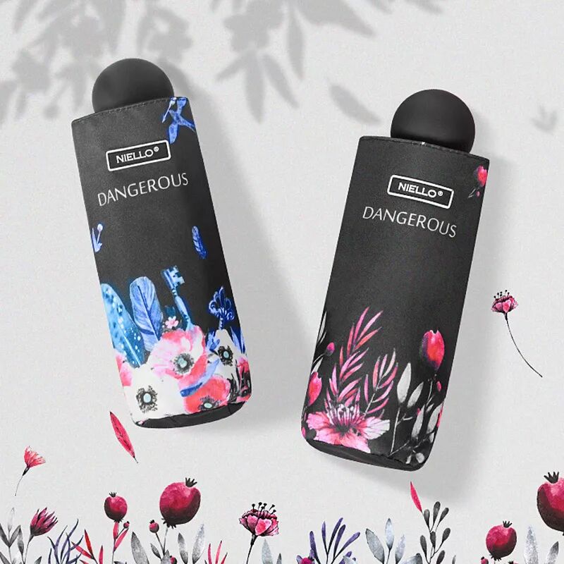 【買1送1】特惠裝 晴雨兩用 女士便攜式五折折疊黑膠遮陽傘防曬防紫外線戶外膠囊雨傘HSJ198
