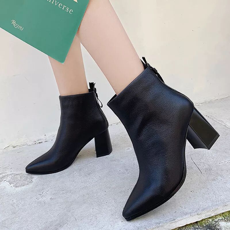 2018新款高端頭層皮時裝鞋尖頭短靴粗皮靴MB6519