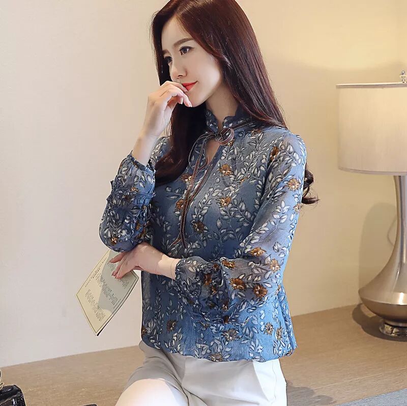 新款燈籠袖收腰碎花寬鬆顯瘦雪紡衫KQL8321