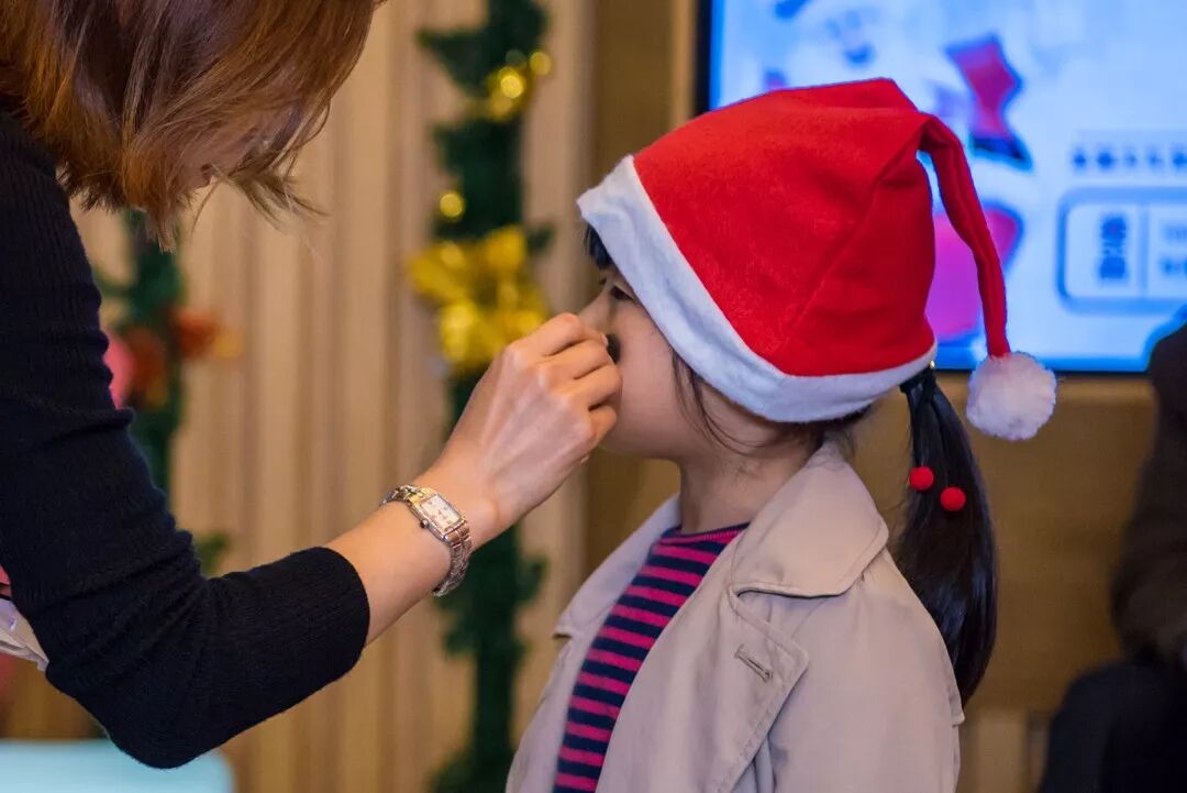 聖誕Party共分為兩大環節,前半段為遊戲環節,共設三個親子遊戲,有拼圖遊戲《眼明手快》;有接力遊戲《能量傳遞》,還有趣味穿脫遊戲《依依不舍》,每個遊戲活動室都充滿了孩子們的歡聲笑語。