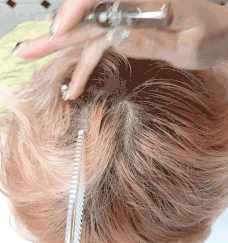 Step 3.把精華塗在頭皮上,再用手指肚輕柔按摩。