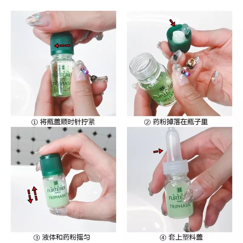 注意瓶蓋要旋轉到底,聽到咔嚓一聲繼續轉,才能把瓶內的粉末頂到液體里哦。