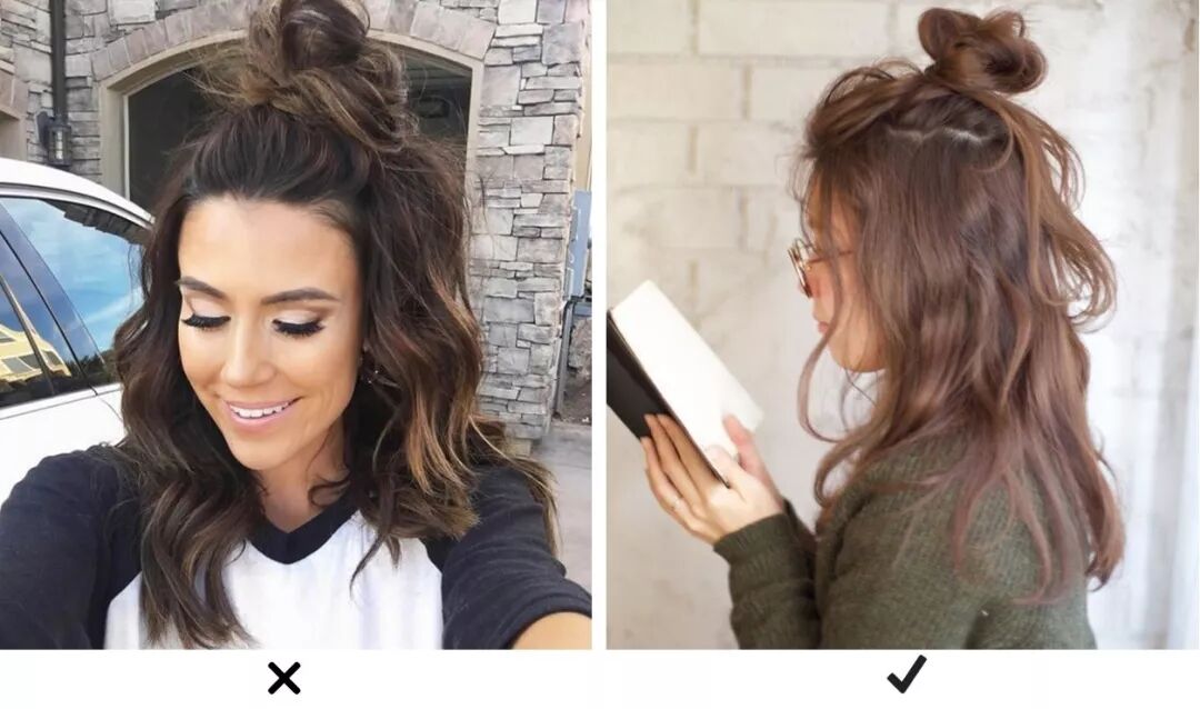 發量多的人紮半丸子頭,有一種中年人強行裝可愛的感覺,哪哪都是違和感。