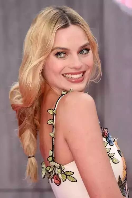 Margot Robbie這款就更隨性了,兩側的頭髮松散的特點可很好地修飾臉型。