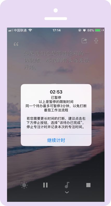 開始一個番茄時間後是不可以退出的