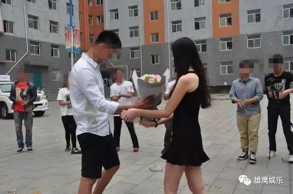 舞一跳完土豪就立即表白了,送上剛買的粉色玫瑰,也不知道在女生耳邊說了什麼悄悄話,一下子女生就感動了。接下了男主角手中的玫瑰花後,當時周圍學生就大呼小叫,全部都見證了這場浪漫的愛情!