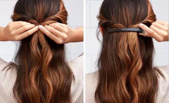 用一個長型發夾夾住,用於固定。