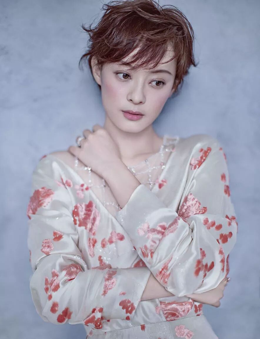 最近唐嫣換了精靈短髮,搭配眉上瀏海俏皮又復古,完全看不出額頭多高啦。