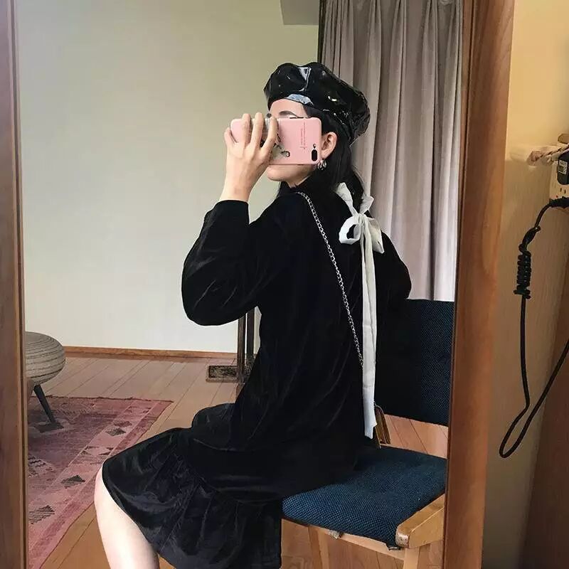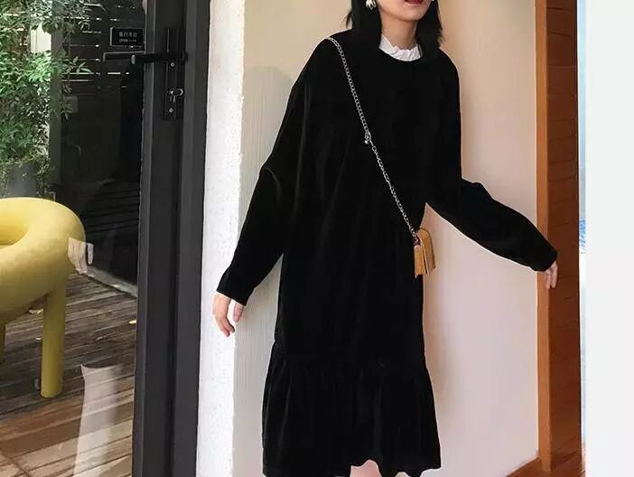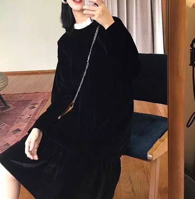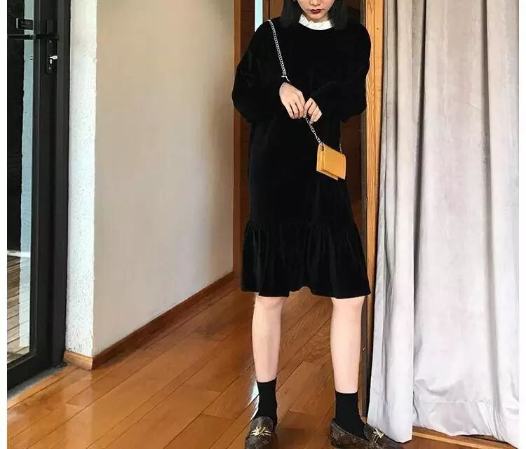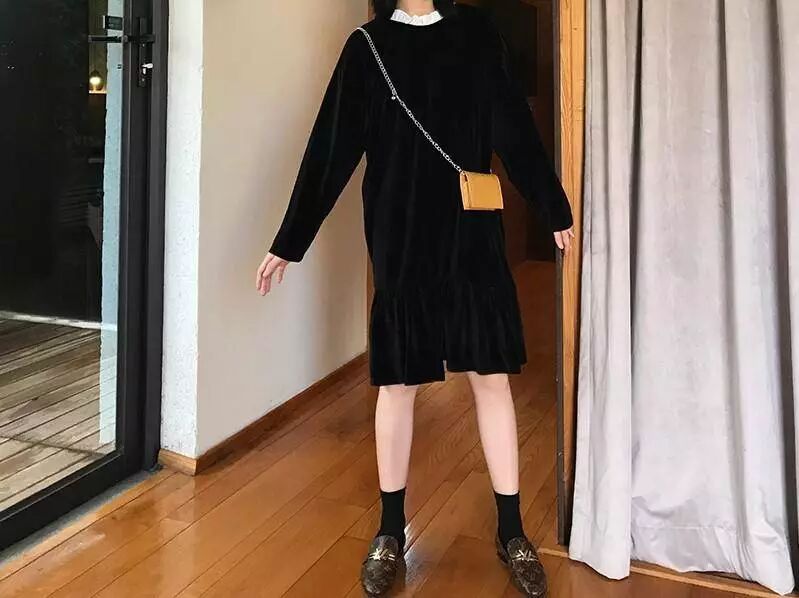 3.溫柔減齡少女的絲絨連衣裙