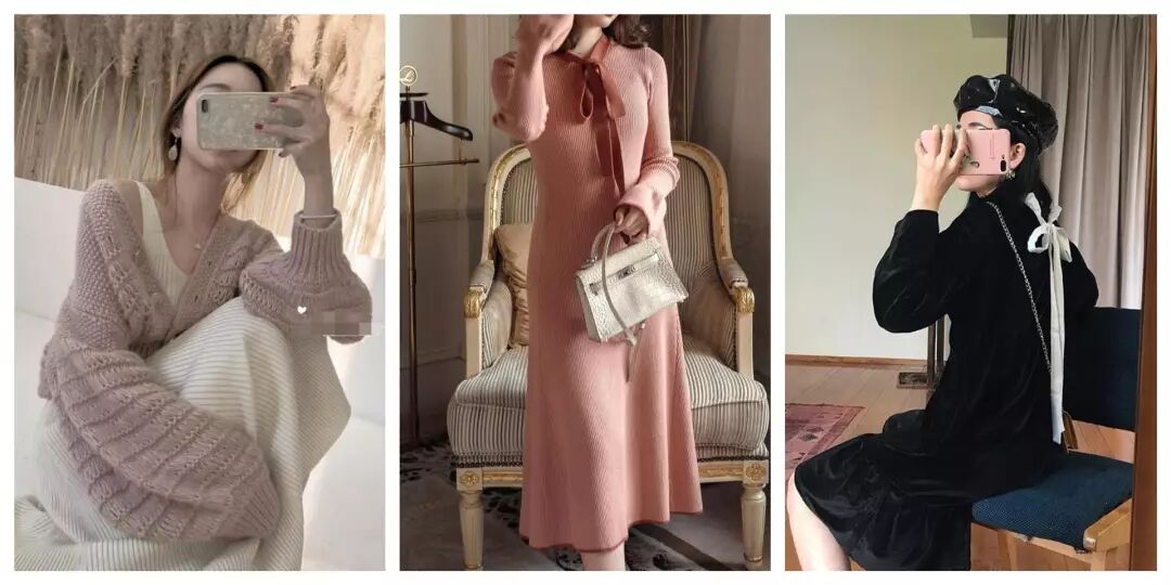 淑女撩人的針織兩件套,斬男色針織連衣裙,心機俏皮的絲絨小黑裙。