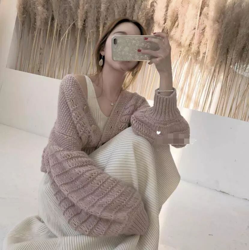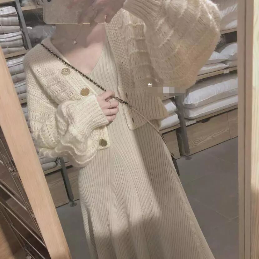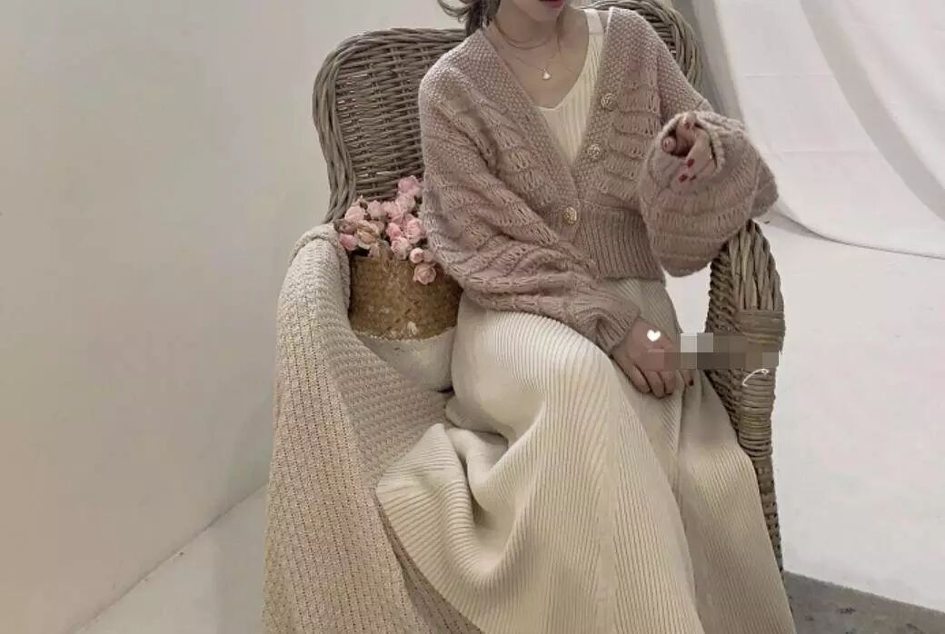 1.絕對溫柔撩人的針織裙開衫兩件套