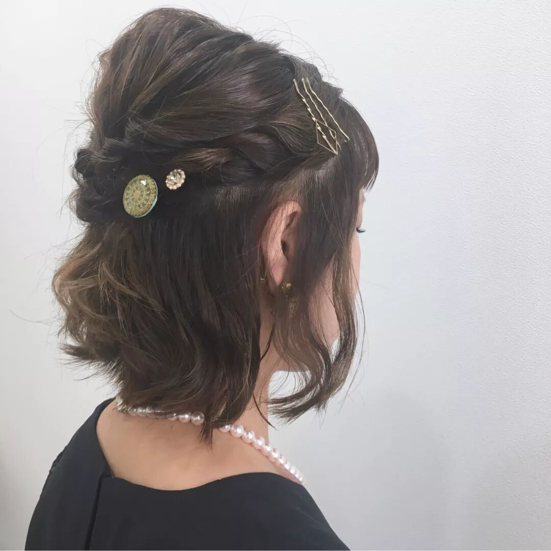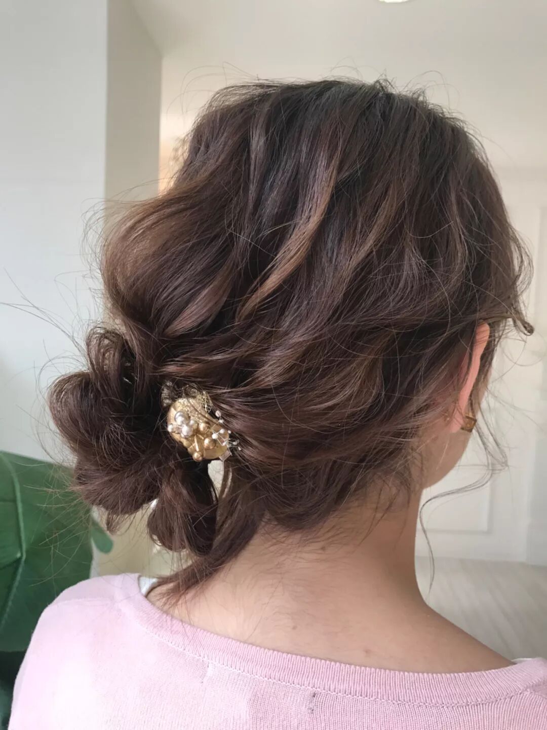 偏復古優雅的圓形髮飾+一字夾,真的很可愛。
