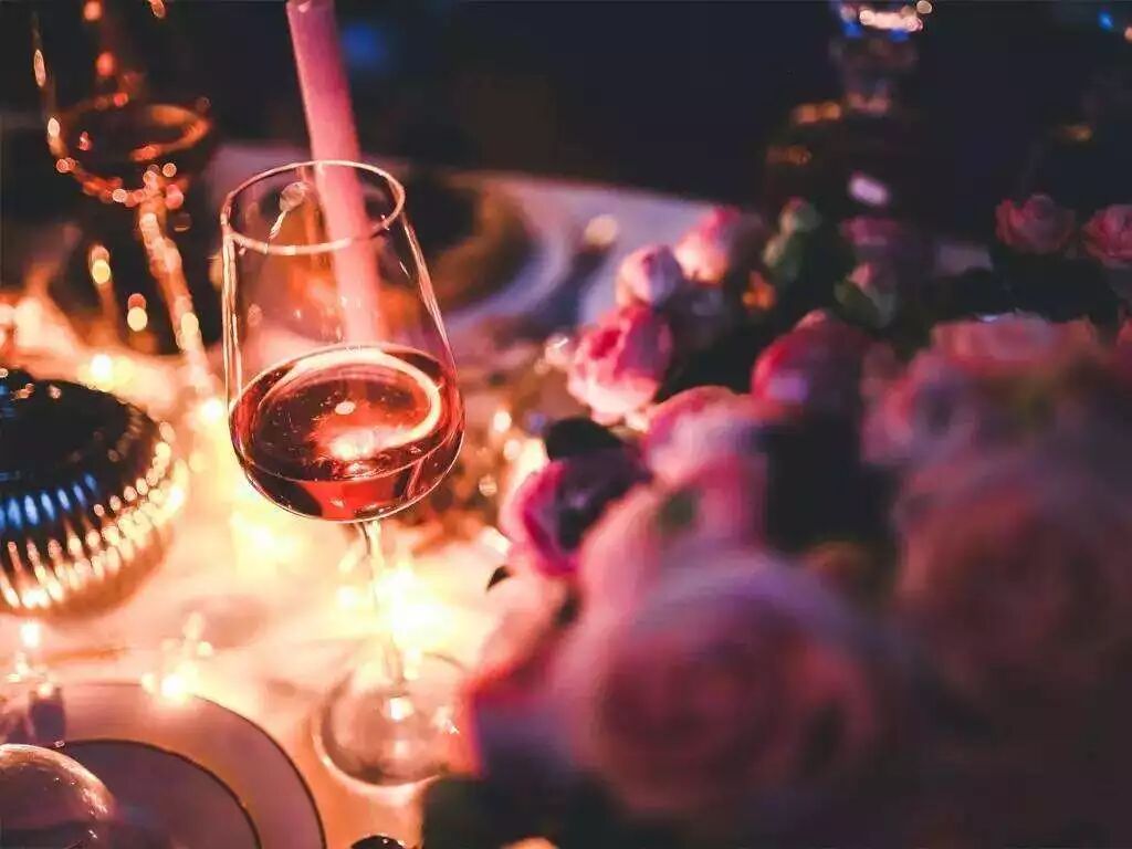 朦朧的燭光下,品著紅酒