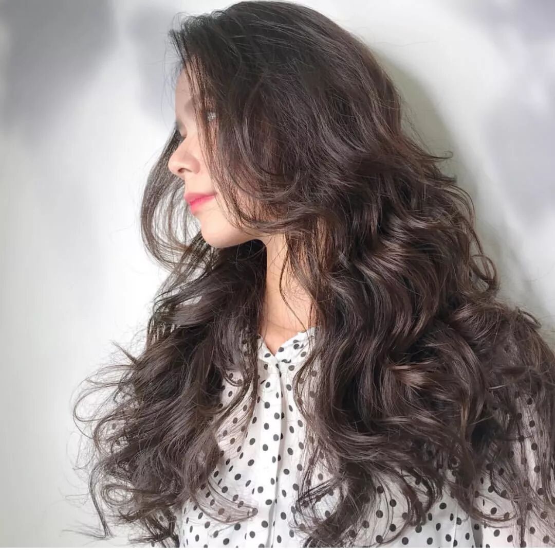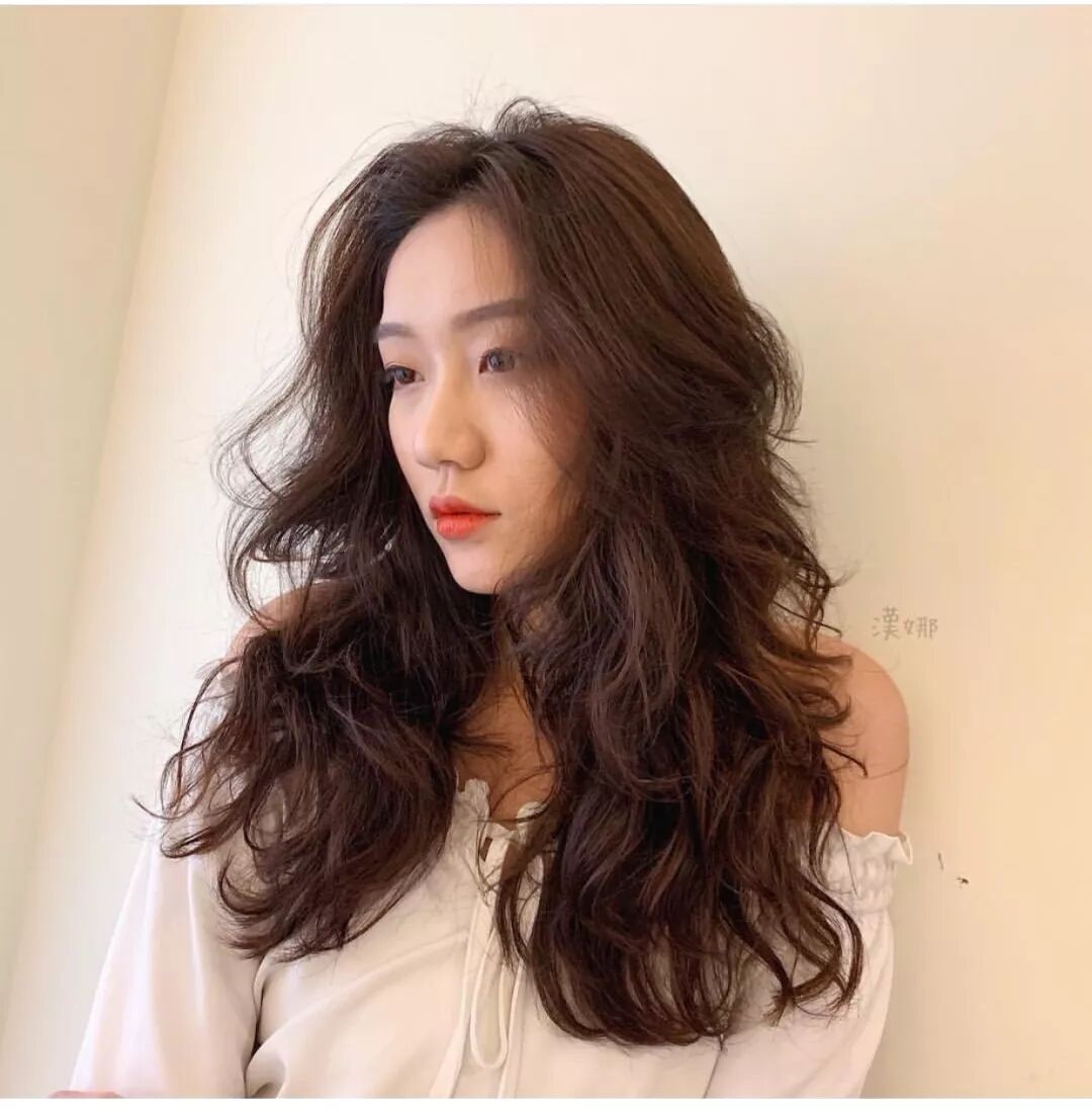 長髮大波浪卷一直都非常流行,而且幾乎適合所有女生,比較傾向於輕熟風,瀏海的搭配就顯得特別重要,想要清甜可愛的可以搭配齊瀏海或者空氣瀏海,側分或者中分更顯成熟風。