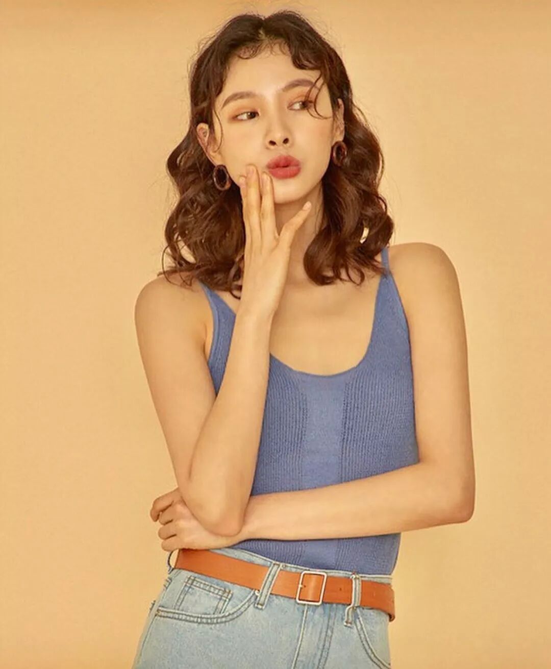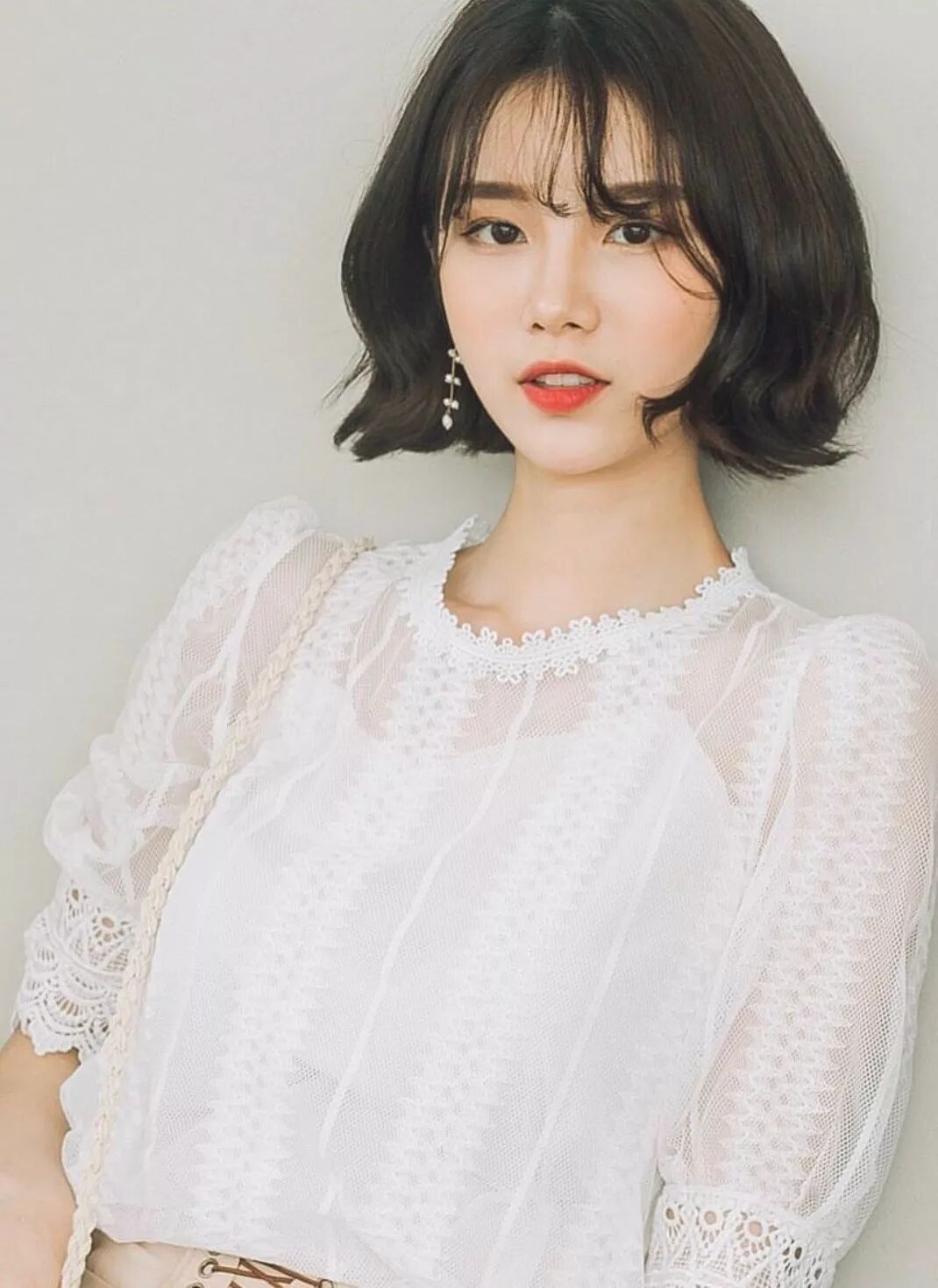 像這樣長度剛剛到下巴的捲髮可以修飾臉型,再留一點空氣瀏海,臉小到沒朋友!