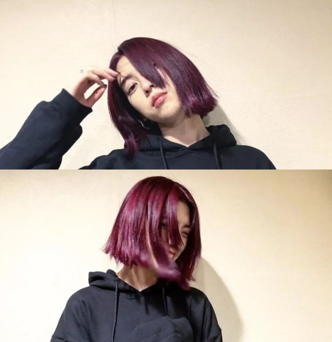 這個紫粉色爆炸好看!太有性格了,齊短髮也夠帥氣,戴個誇張的金屬耳飾,很適合蹦迪哈哈哈~