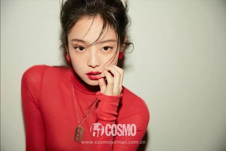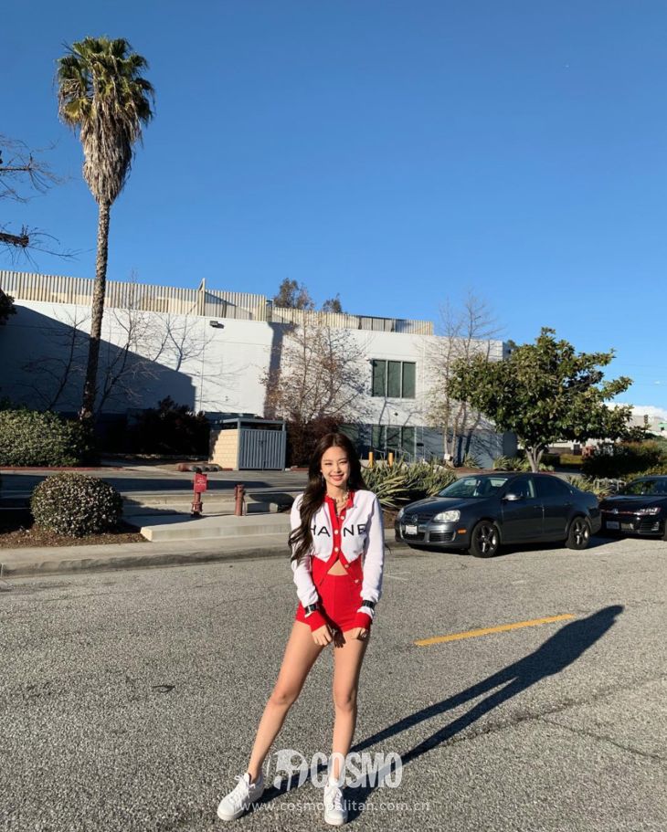 Jisoo則不一樣穿起了小裙子,大紅色軟呢外套內搭上淺一色系的針織裙,這種亮色系特別適合初春出行,緊身款式非常修身顯身材,元氣穿搭了解一下。