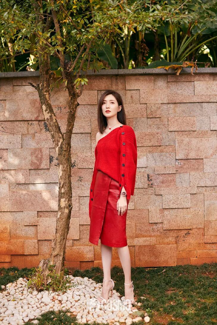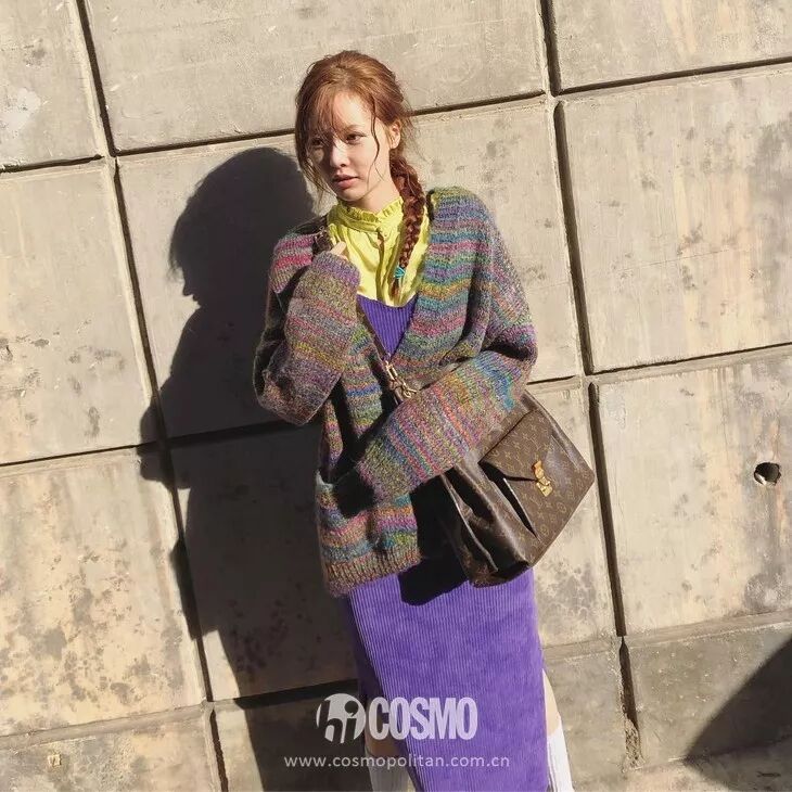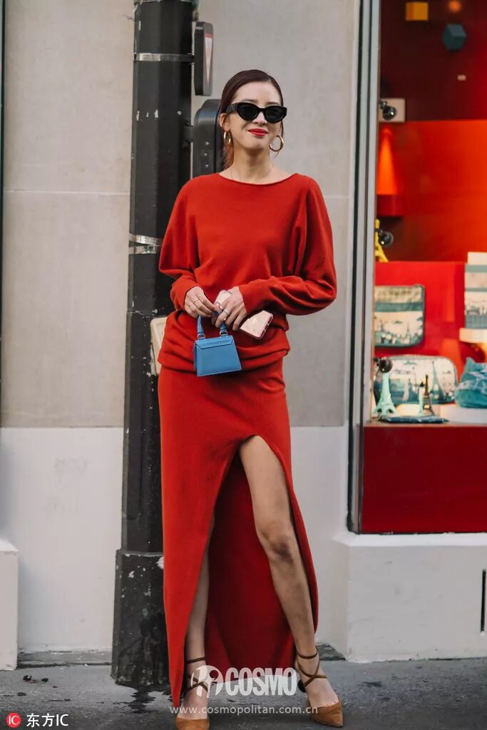 除了亮綠色很多顏色的基礎款針織衫在初春都很合拍,打眼的顏色給一年開了一個好頭。紅色系火熱有張力,像江江這樣配上開衩裙,簡約有氣質,而且特別顯氣色。