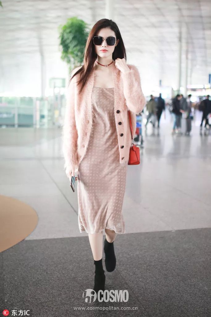 像何穗一樣內搭上一條slip dress的穿法很有女生味。