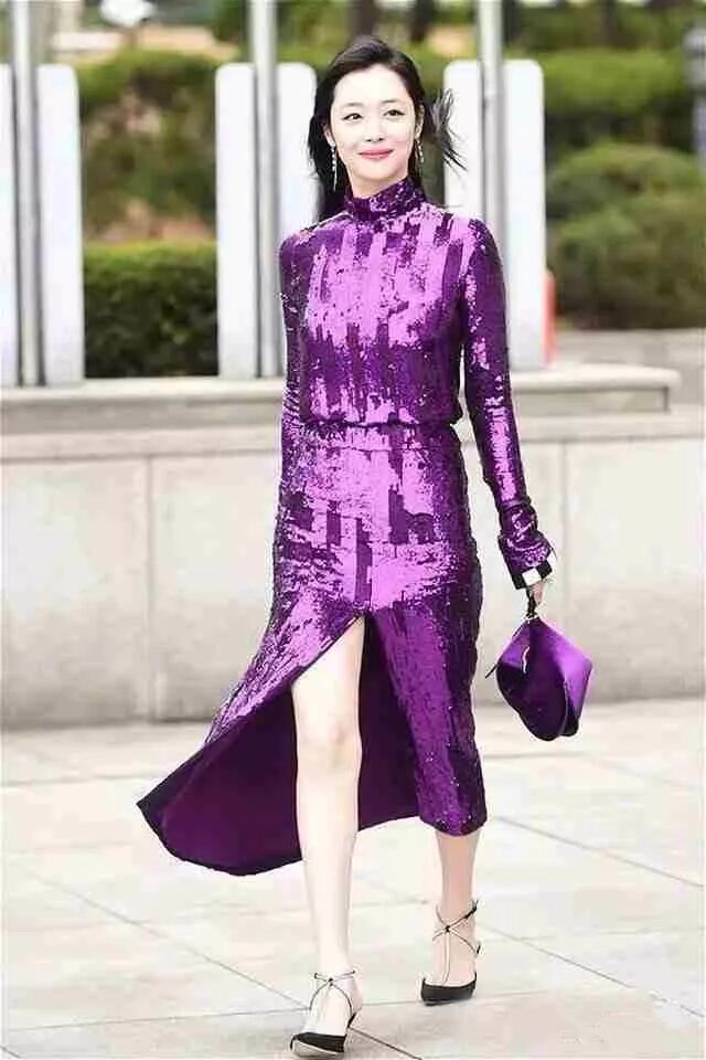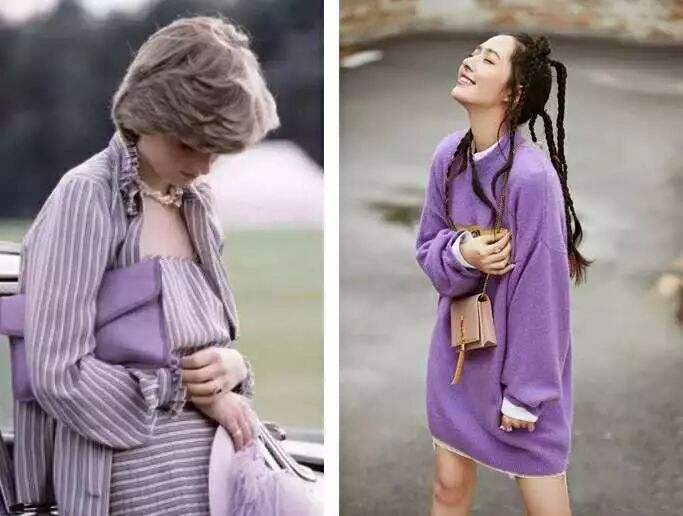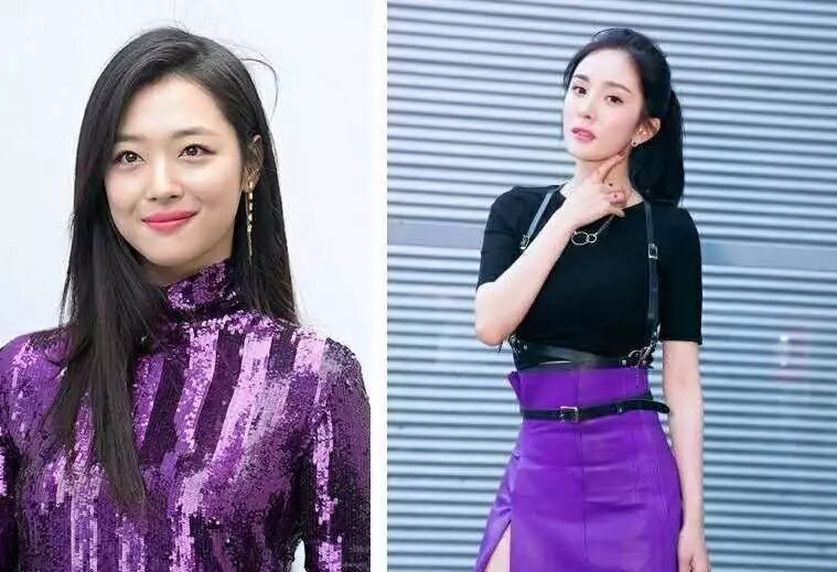 再看一下崔雪莉和楊冪的對比,少女崔雪莉也駕馭不了靠近臉的大片紫。