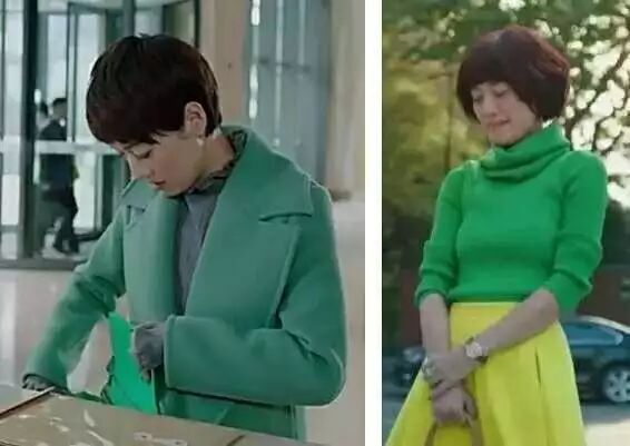 例如後期的羅子君,同樣是綠色,但是飽和度一降低就很有時尚感。