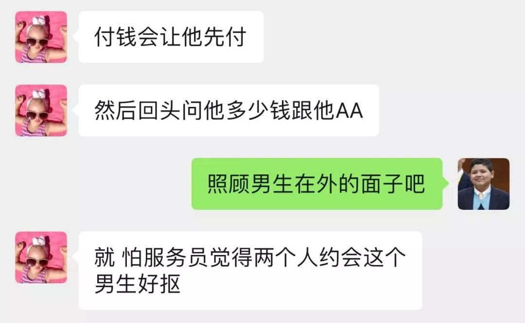 這裡想告訴一下男生們,如果一個女生堅持要跟你AA,很可能就是她對你沒意思,趕快把錢收了吧。